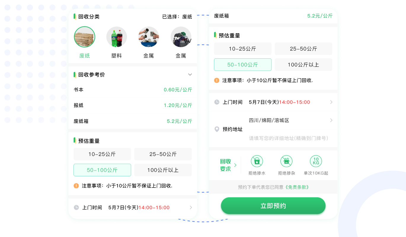 用戶一鍵下單回收,系統自動派單,回收員上門回收